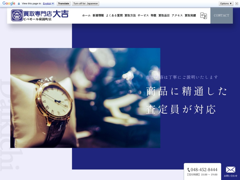 | 買取専門店大吉ビバモール蕨錦町店 | 高い専門性と豊富な実績、丁寧な査定が評判 | 金製品全般、ブランドジュエリー、貴金属等 |